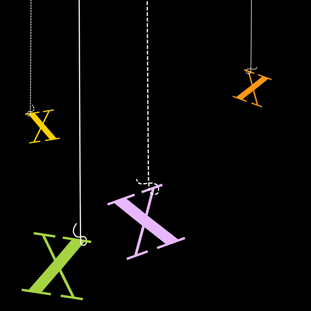 A design, photography and illustration series. This was done in conjunction with the Carol and Robert Bush Art Center's 10 year Anniversary. 100 versions of the letter X. All photography original by Brian Pirman except for the Bo Derek photo.